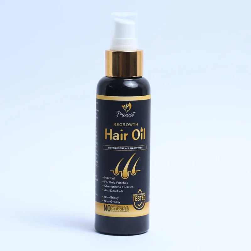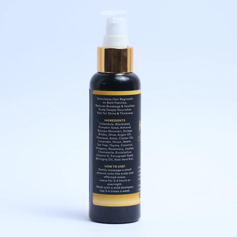 Regrowth Hair Oil is a powerful, 100% natural formula designed to help reduce hair fall, stimulate regrowth on bald patches, and deeply nourish your scalp. This oil is made with a blend of organic ingredients that strengthen hair follicles, reduce dandruff, and restore shine and thickness to your hair. Suitable for all hair types, this oil provides a non-sticky, non-greasy solution for healthier hair.
